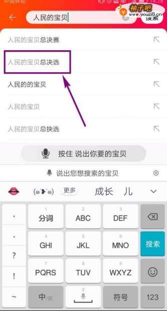 2在搜索栏中输入【人民的宝贝总决选】,然后点击搜索。
