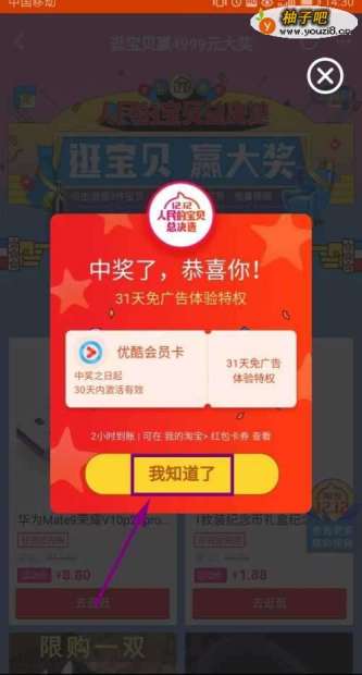 5点击之后就会显示抽奖结果,小编没有抽到,而是抽到的其他东西。不过没有关系,我们能再次回到活动页面,重新查询3件商品后,再进行抽奖,多抽几次总会抽到的。