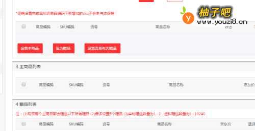 3点击“浏览”,找到主推产品,点击“使用主商品”;找到所要赠送的赠品,点击“设为赠品”。