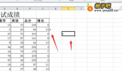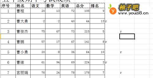我们需要一个辅助列,我们选择第二个和第三个学生旁边隔一列输入一个辅助字符,随便输啥都能,例如我们输入r。
