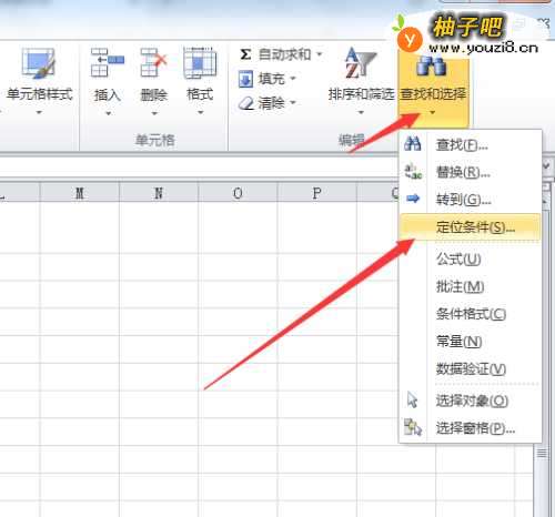 3这时候不要点击鼠标,直接按ctl+G,或者点击右上角的定位条件。点击定位条件,然后选择空值,确认。