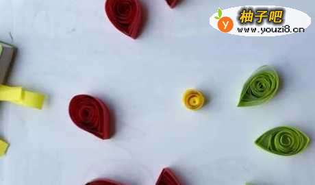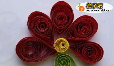 5同样的办法卷花心。花心是圆形,就不用捏。