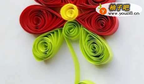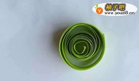 4把衍纸一端卷起来,另一端就不用卷,卷的那一端放在花心哪里,没卷的那一端当花梗。