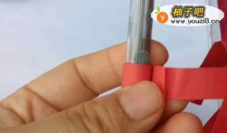 用细小的圆柱体把衍纸卷起来,中间用胶水粘贴连接。