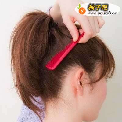 7用梳子将马尾梳理顺,然后用手打乱,弄出自然的感觉来!