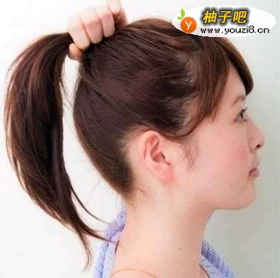 5高马尾梳理整齐后用皮筋把头发束住