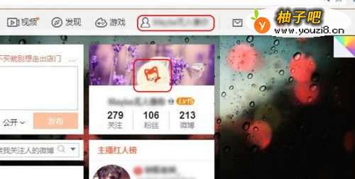 开启浏览器搜索新浪微博点进去,登录自己的个人帐号和密码,登录成功后跳转到了首页。这时候,我们点右上角有我们昵称的地方开启个人主页,或者是点下面有头像的位置也行。