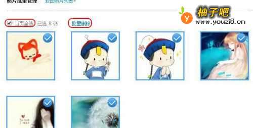 实在是觉得头像不好使,就点右上角的【批量删除】,选择【当页全选】选择一页全部的头像图,点批量删除就能快速删除大批头像,适合于配置过很多头像的网友们实施。