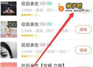 3在搜索结果页面,点击“演唱”,如图所示。