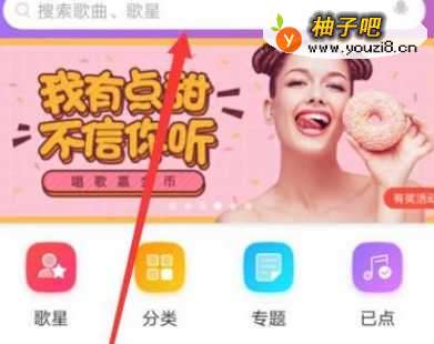 2进入之后,在图示位置搜索想要下载伴奏的歌曲,如图所示。