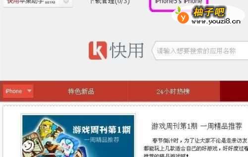 2苹果手机中的数据会自动导入在快用苹果助手里面,成功后在里面会有显示iPhone,然后点开iPhone。