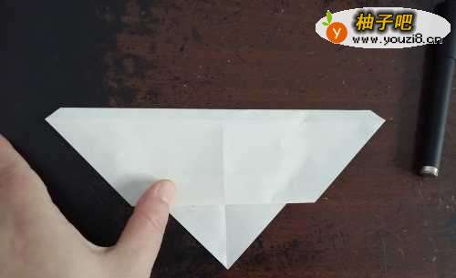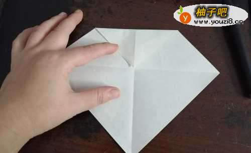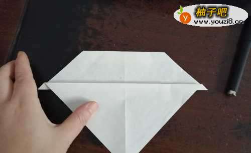 5接下来,我们把彩纸翻到背面,把两侧的角向内折,如图二。
