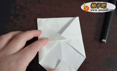 3我们再把角向回折,继续把角向下折,如下图。
