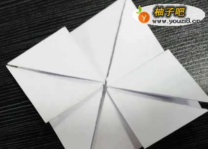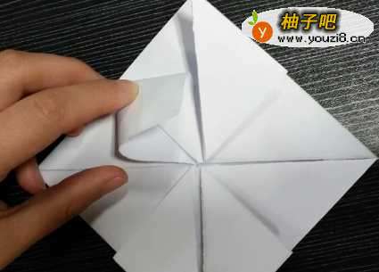 5然后将其中一角如下图折叠。其余三昆召角同理。