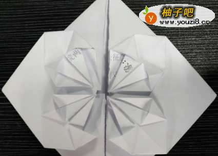 3然后将纸竖起,按下图折叠码往,上面下面一起折好。得到下图的样子。