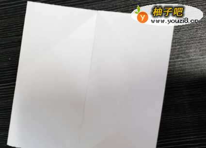 准备一张长方形纸,平放,然后从中间对折,压出折痕,开启,将两边折成下图的样子。