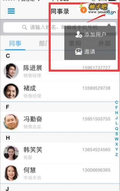 4你也能直接发起邀请。点击同事录界面,邀请趣牢用户即可。