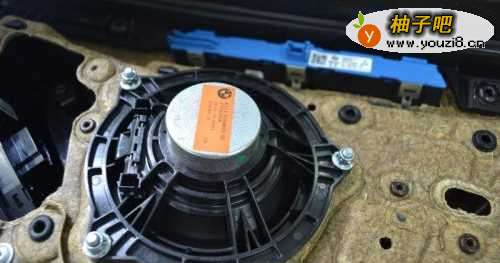 3前门板中音施工中,拆掉原车中音,换上哈曼中音