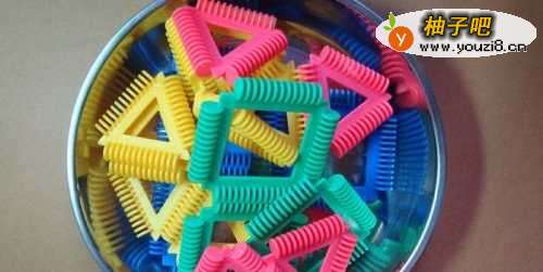 把所需要的积木全部倒在一个铁盘子里,这样在找积木零件时会比较方便。而且孩子在盘子里做积木,如果不小心没拼好时,积木也不会掉在地上造成损坏或者丢失。