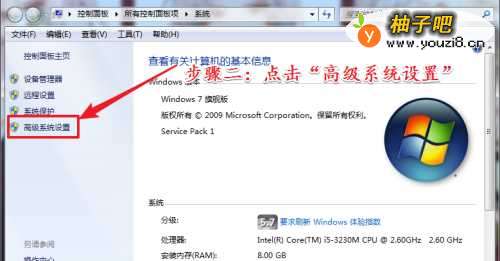 2启用计算机的“属性”面板以后,点击界面左侧菜单中的“高级系统使用”选项。