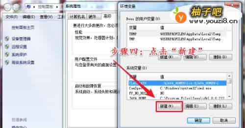 4进入“环境变量”使用界面以后,点击“系统变量”一栏中的“新建”按钮。