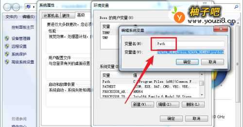 6完成“JAVA_HOME”的新建以后,在原有的变量列表中找到“Path”变量。点击该变量再点击“编辑”。最后将“;%JAVA_HOME%in;%JAVA_HOME%jrein”粘贴到原有变量值的后面保存即可。