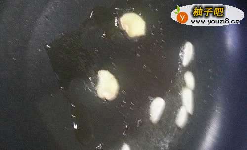 3锅烧热,放入少许油,油温五成热时将姜蒜放入锅中