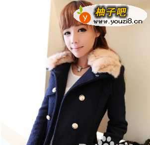 藏蓝色系配以白色的绒毛,形成独具魅力的撞色,给人一种气质感受!搭配一款毛呢打底裙,下装穿打底裤和短靴,逛街猛赚回头率哦。