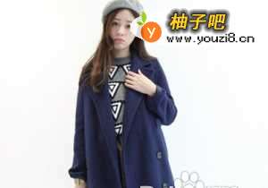 惹眼的藏蓝色款,茧型的独特版型设计,简单的西装版型元素的融入添彩很多哦,小翻领,双排扣的经典细节搭配毛线衣有种文艺青年范。