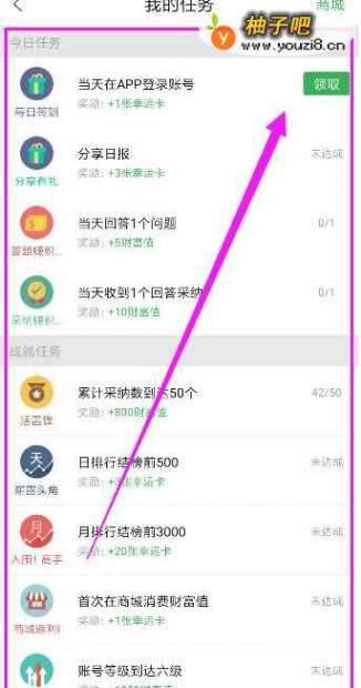 6在我的任务页面,点击每日签到后面的领取,就能领取登录奖励了,如图所示