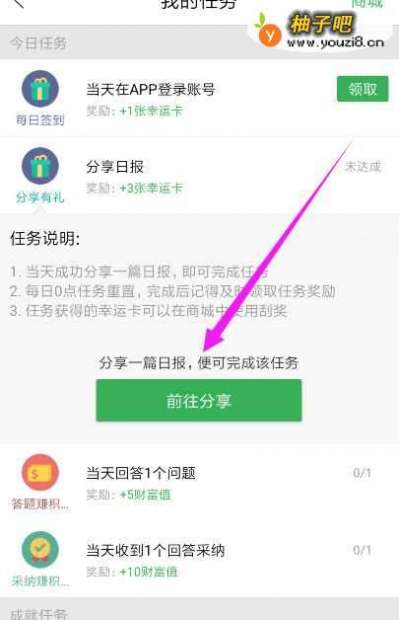 7另外,你还想做其他任务,你还能点击分享日报,如图所示