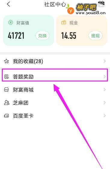 4这时候就来到社区中心了,点击答题奖励,如图所示
