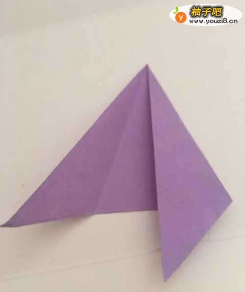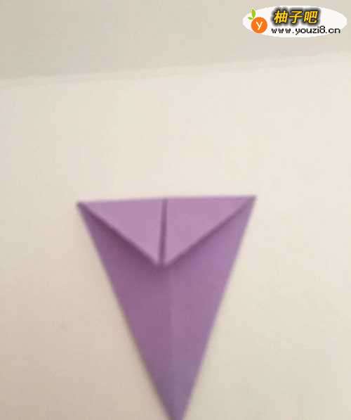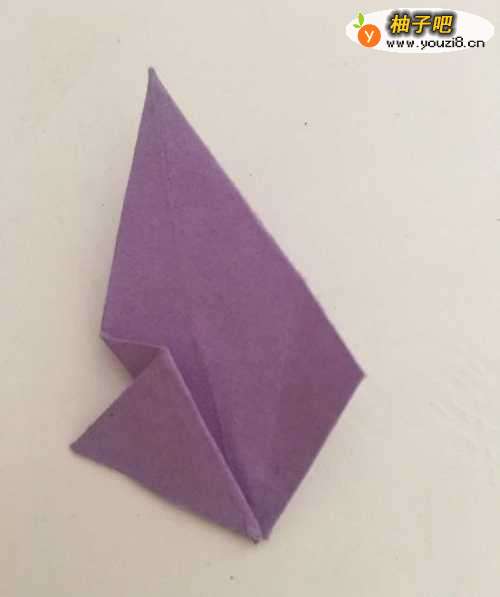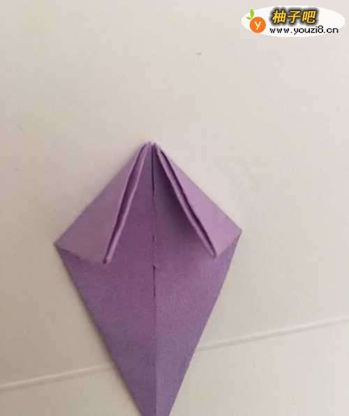 3第三步 上下翻过来 上面两个单页三角形向下对齐折叠 然后按折痕 向里折去