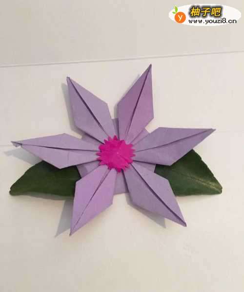 6第六步 折叠完一个 再按同样的方式步骤 折叠5个 拼在一起就成了六角花 放点花蕊 和叶子就行了