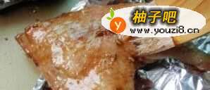 9待烤了17分钟左右时,把鸭腿拿出来再刷一层蜂蜜汁;
