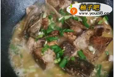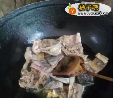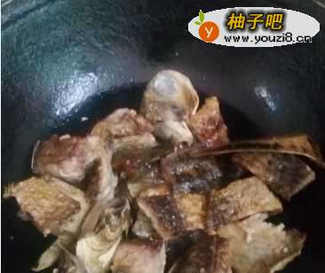 5等干鱼段一面煎黄之后,逐个翻过来