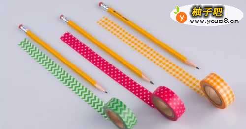 在学校拥有独特的文具,能展示自己的风格,同时这是一种是聪明的行为。因为当您的文具拥有独特的花朵图案或景观赏图案时,其他孩子难以认错文具。 没有必要去购买独特的现成的铅笔,当您能在几分钟内用一卷和纸胶带装饰成一只只独特的铅笔。 用绉纸制成的和纸胶带比BOPP胶带更容易清洁,但不像布基胶带高粘。能粘在一些东西上,再把它剥去,而不会破坏东西的表面。最重点的是,它有数千种图案:鲜花,运动,条纹甚至迷彩。 所以拿起几卷和纸胶带,按照下边的简单步骤,用五颜六色的铅笔装满你的文具盒。