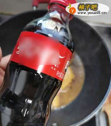 2接下来,将焯水后的鸡翅放入锅中,加入一整瓶可乐。