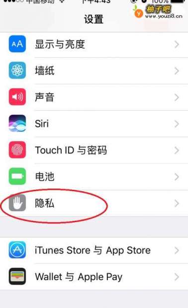 2在使用页面下找到“隐私”
