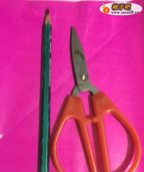 5第五步 涂实完之后 拿起手工剪刀开始裁剪 先把月季花外围多余的彩纸剪去