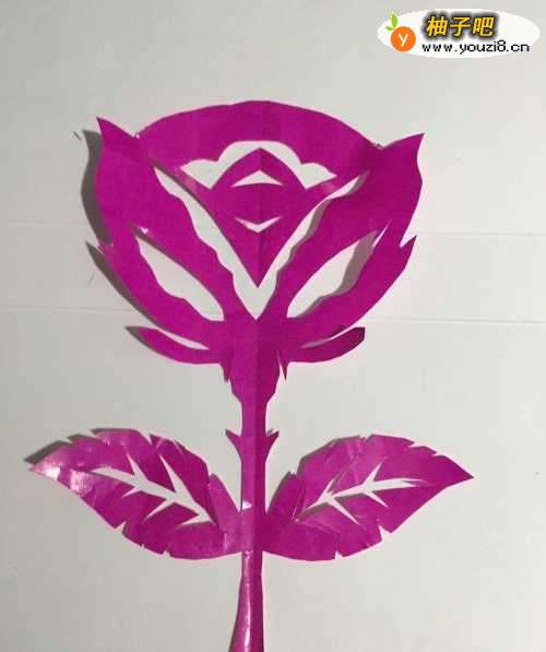 儿童剪纸 一枝漂亮的月季花怎么用彩纸裁剪二