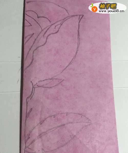 6第六步 剪完外围多余的彩纸之后 再剪里面花朵的部分和叶子部分 还有其它涂实的地方 剪完之后 取开铺平就行了