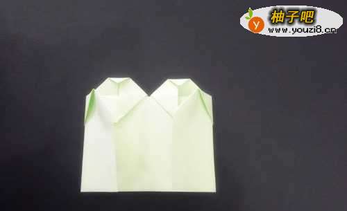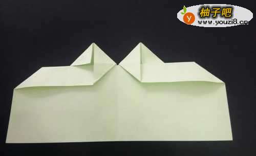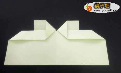 4压平后将左右两部分的直角部分往右往左对折,对折后将最下面尖端部分往上折起一个小角。
