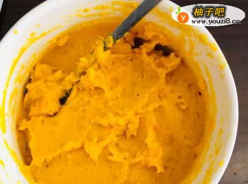 6准备馅料,340g南瓜泥➕30g糯米粉➕25g白糖,搅拌均匀即可。