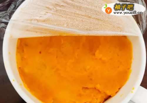 南瓜压成泥,取出200g,剩下340g放入冰箱冷藏