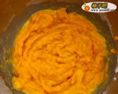 2南瓜泥中➕一个鸡蛋➕50g牛奶,搅拌均匀