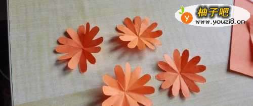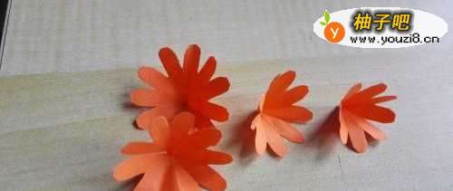 4然后分别把四个剪掉一个花瓣,两个花瓣,三个花瓣,四个花瓣,如图2