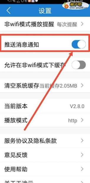 4开启配置,然后点击关闭(推送消息通知)的按钮即可。