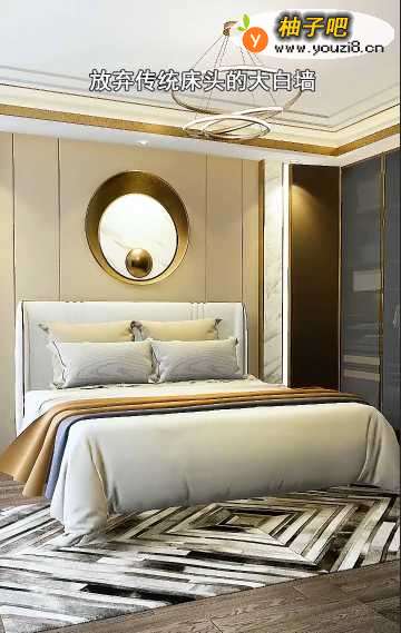 2放弃传统床头的大白墙,硬包结合不锈钢线条、岩板。潮流时尚又不失温馨。