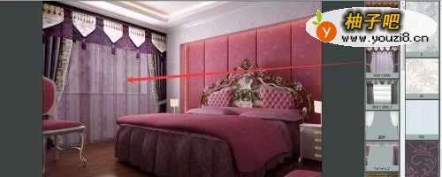 4最后我们就能将设计好的窗帘放于房间中看效果了。